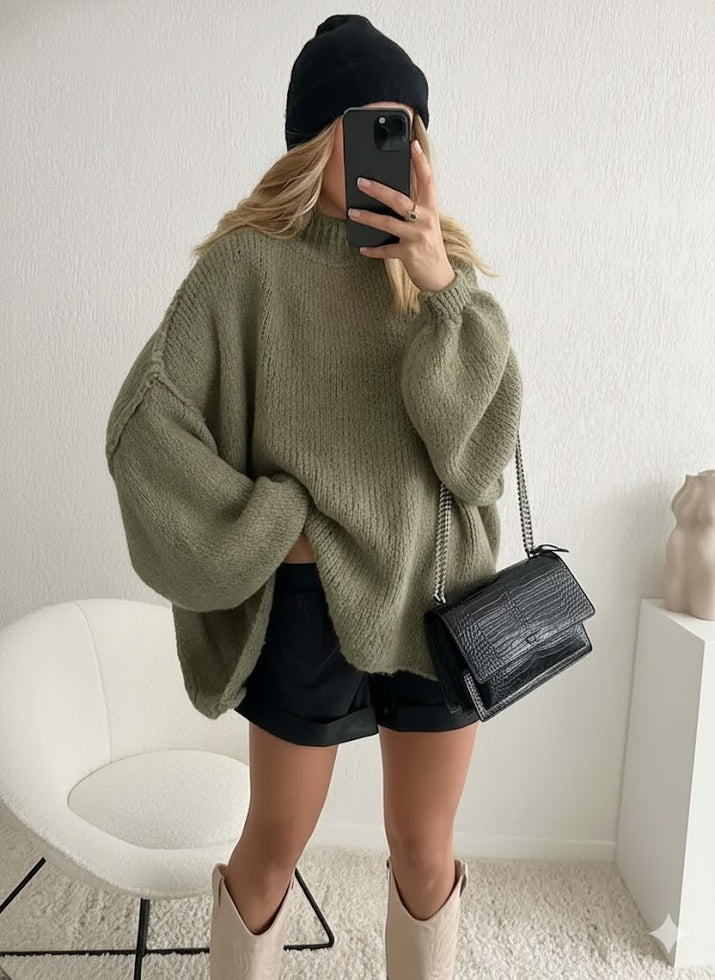 Sa coupe ample et son col roulé long apportent une touche moderne et décontractée, parfaite pour un look chic sans effort.